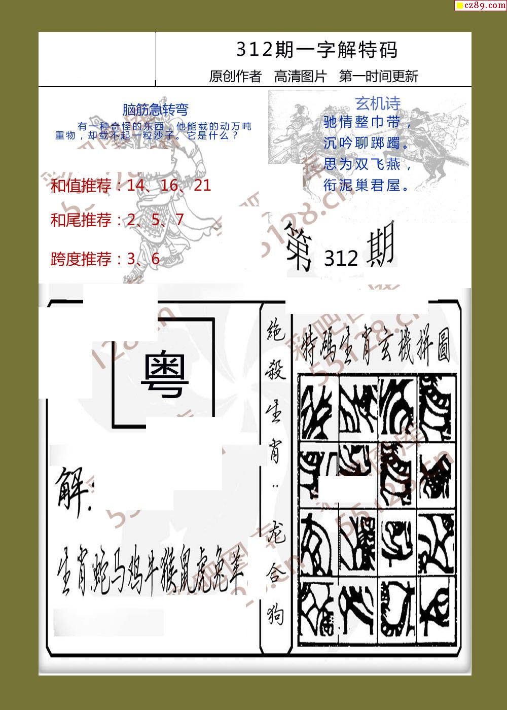 25年312期一字解特码福彩3d彩报