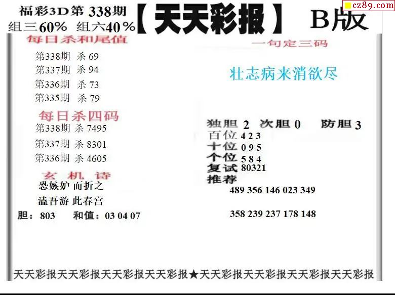 福彩3D2025338期天天彩报A版 天天彩报B版